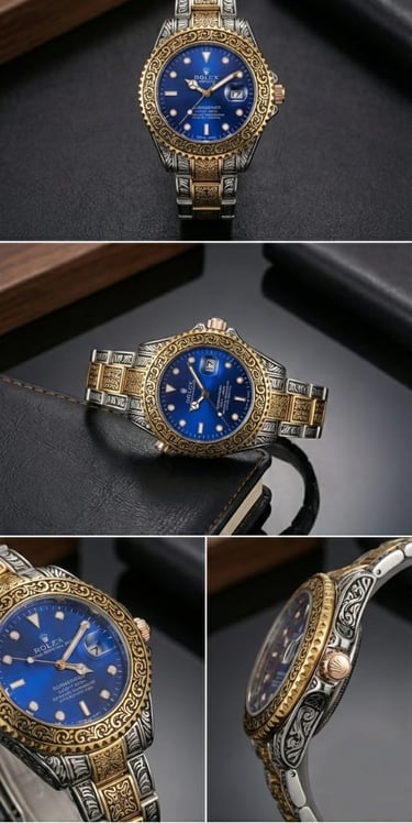 Royal Aesthetic: The watch features an intricate, fully engraved (Carved) design, providing a unique and luxurious appearance.